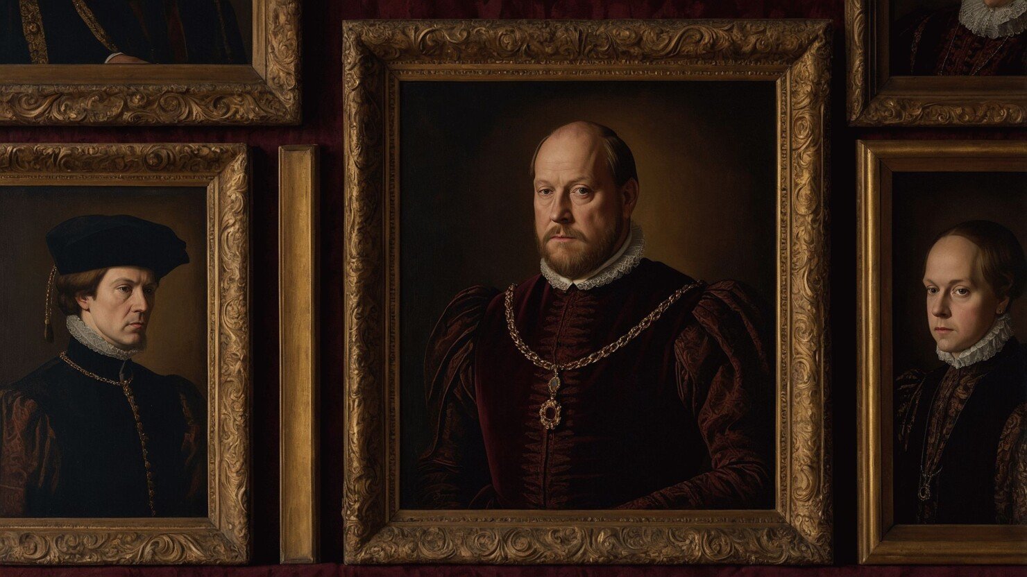 Zdroje: Historic Royal Palaces: Henry VIII’s wives: six queens, six women [článek], Royal Museum of Greenwich: Who were Henry VIII's wives? [článek], Britannica: The six wives of Henry VIII [téma], img ai generated Leonardo AI