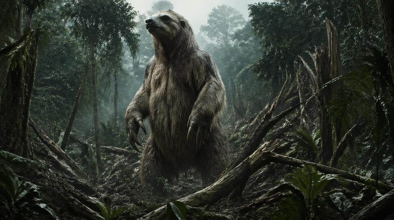 Megatherium byl kolosální tvor. Dosahoval velikosti slona, pohyboval se pomalu, ale měl obrovskou sílu a dlouhé zahnuté drápy. Žil miliony let a zmizel zhruba před 11 tisíci lety — tedy v době, kdy už lidé na kontinentu žili.