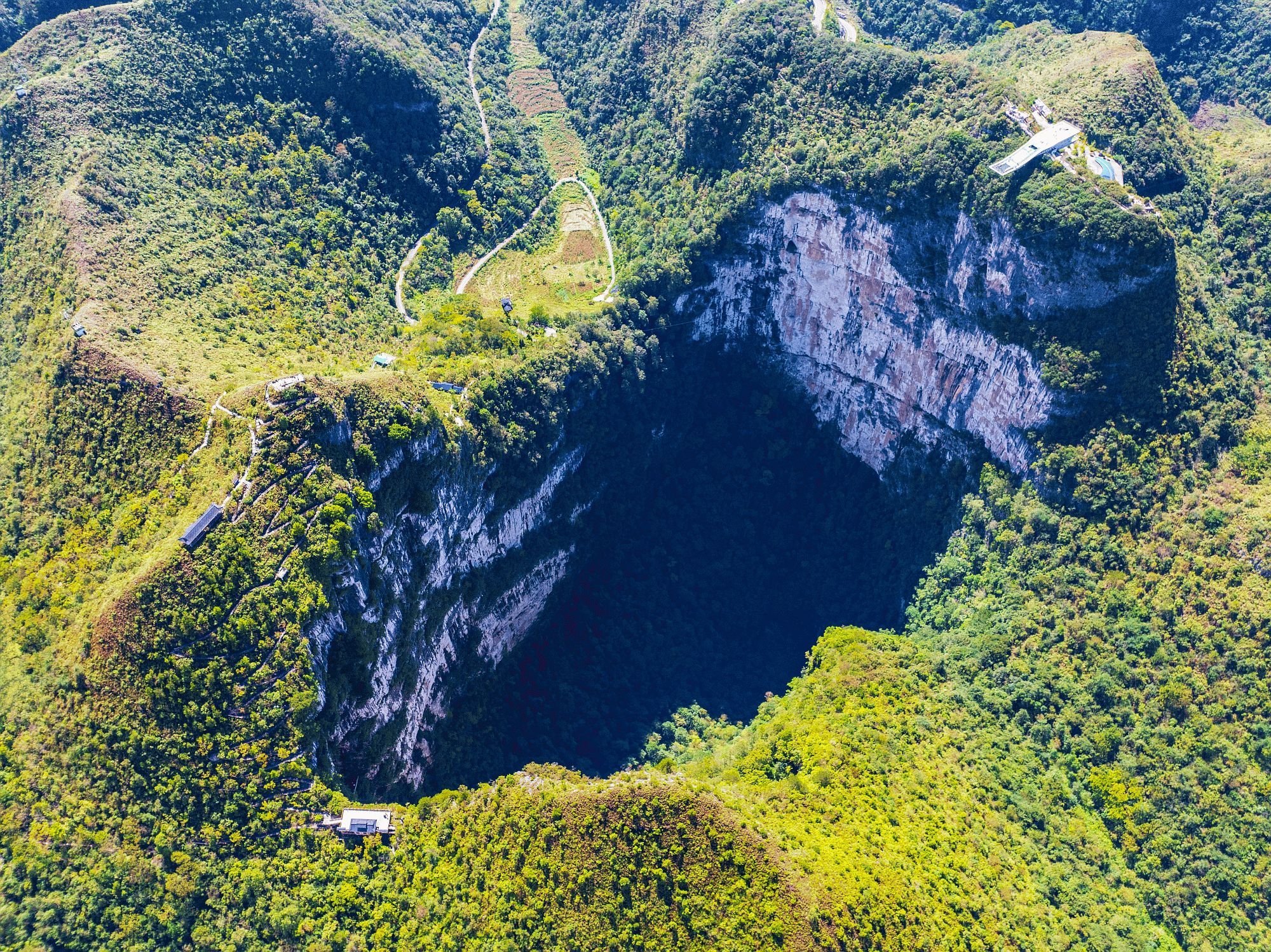 Xiaozhai Tiankeng, přezdívaná „Nebeská jáma“, je nejhlubší známá propast na světě. V jejích stěnách mizí řeky, na jejím dně se rodí vlastní prales a návštěvník má pocit, že se ocitl na hraně jiného s